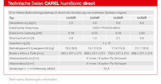 Der CAREL humiSonic direct ermöglicht eine stetige oder einstufige Ansteuerung. Wahlweise kann die Steuerung auch über eine PI-Regelung erfolgen, um z.B. die Luftfeuchte in größeren Räumen präzise zu regeln.
