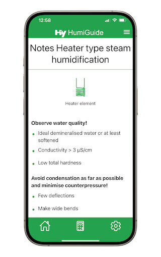 The HumiGuide planner app provides a compact overview of the different methods of air humidification and gives specific recommendations as to which method of air humidification is generally best suited for which application. It also uses planning criteria to provide systematic information on what needs to be considered when planning and installing air humidification systems in HVAC systems.