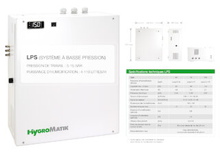 La conception modulaire de nos systèmes d'humidification LPS et HPS permet l'installation ou la mise à niveau dans presque tous les conduits de climatisation. Avec un total de 5 classes de performance, ils peuvent être parfaitement adaptés à vos besoins en matière d'humidification. Jusqu'à une capacité d'humidification de 110 l/h, LPS propose un système d'humidification compact qui fonctionne dans une plage de basse pression allant de 5 à 15 bar (système basse pression). HPS, le plus puissant, fonctionne dans la gamme des hautes pressions avec une pression de 25 à 75 bars (High Pressure System) et permet une performance d'humidification jusqu'à 600 l/h.
