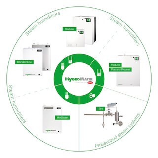 Stable, reliably controllable air humidification can positively influence both the efficiency and the quality of products, for example in production facilities and storage rooms.
